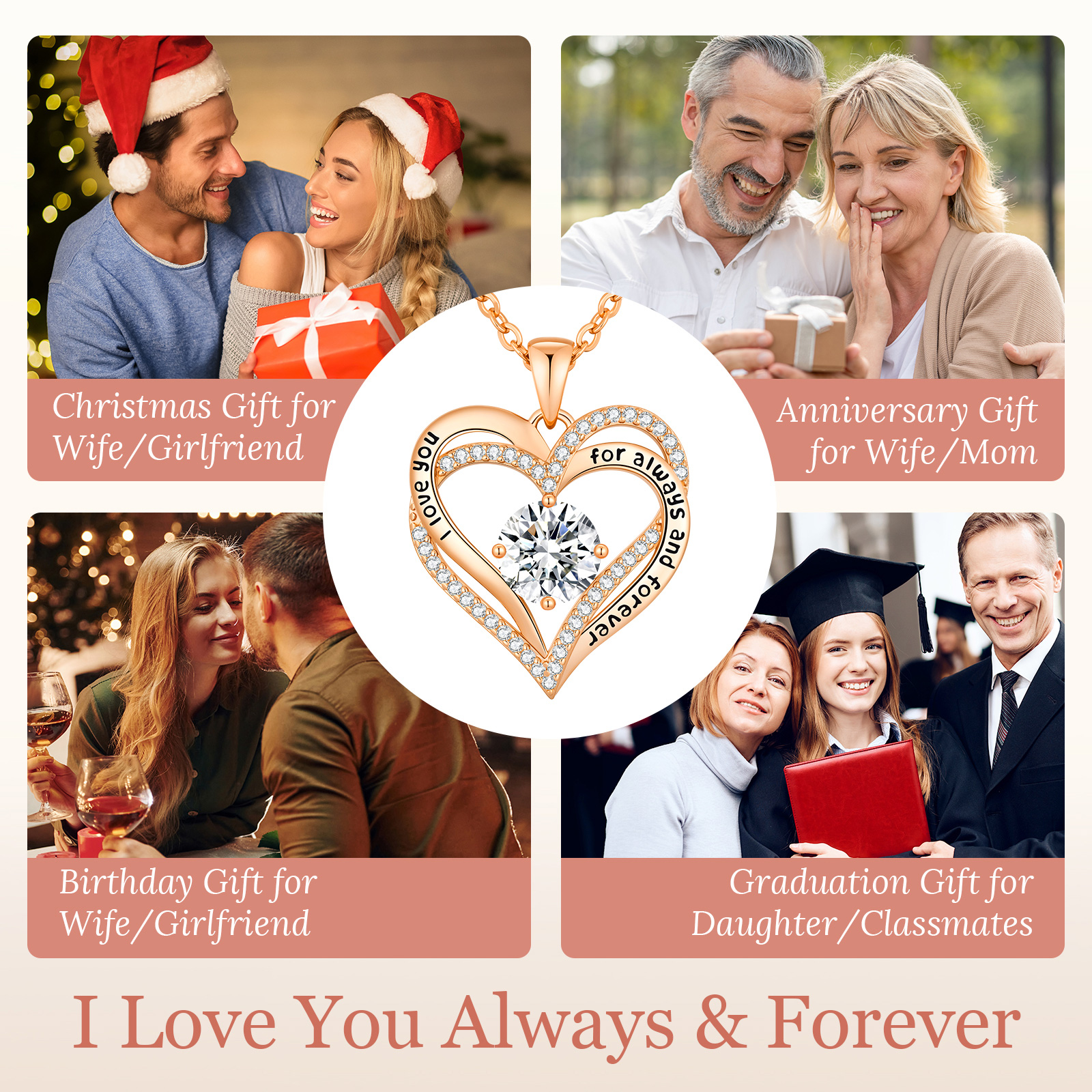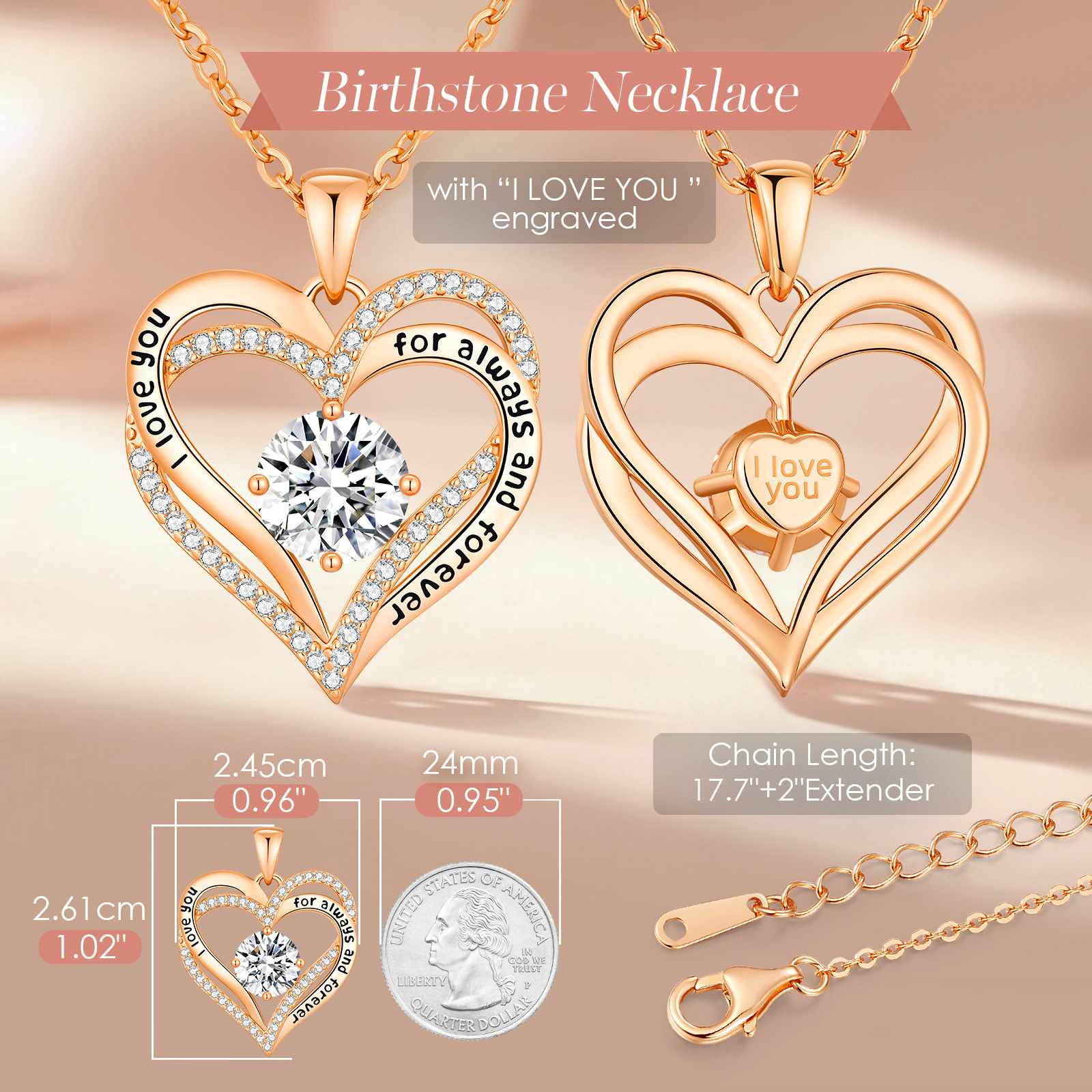 Forever Love Heart Necklaces for Women, Wedding Anniversary, Birthday Gift for Wife Girlfriend Jewelry with Birthstone Pendant