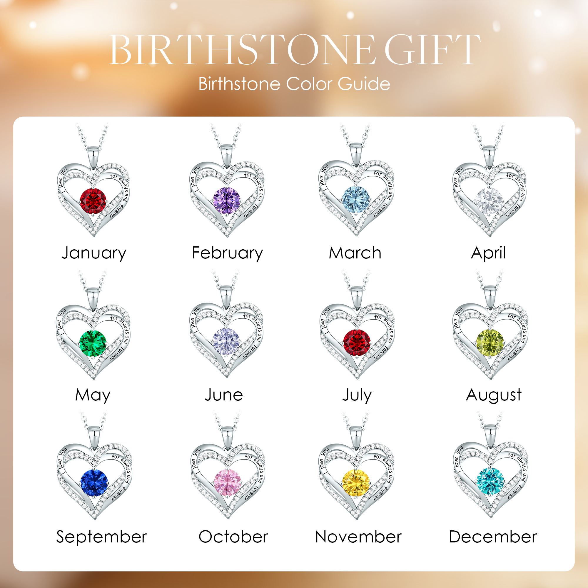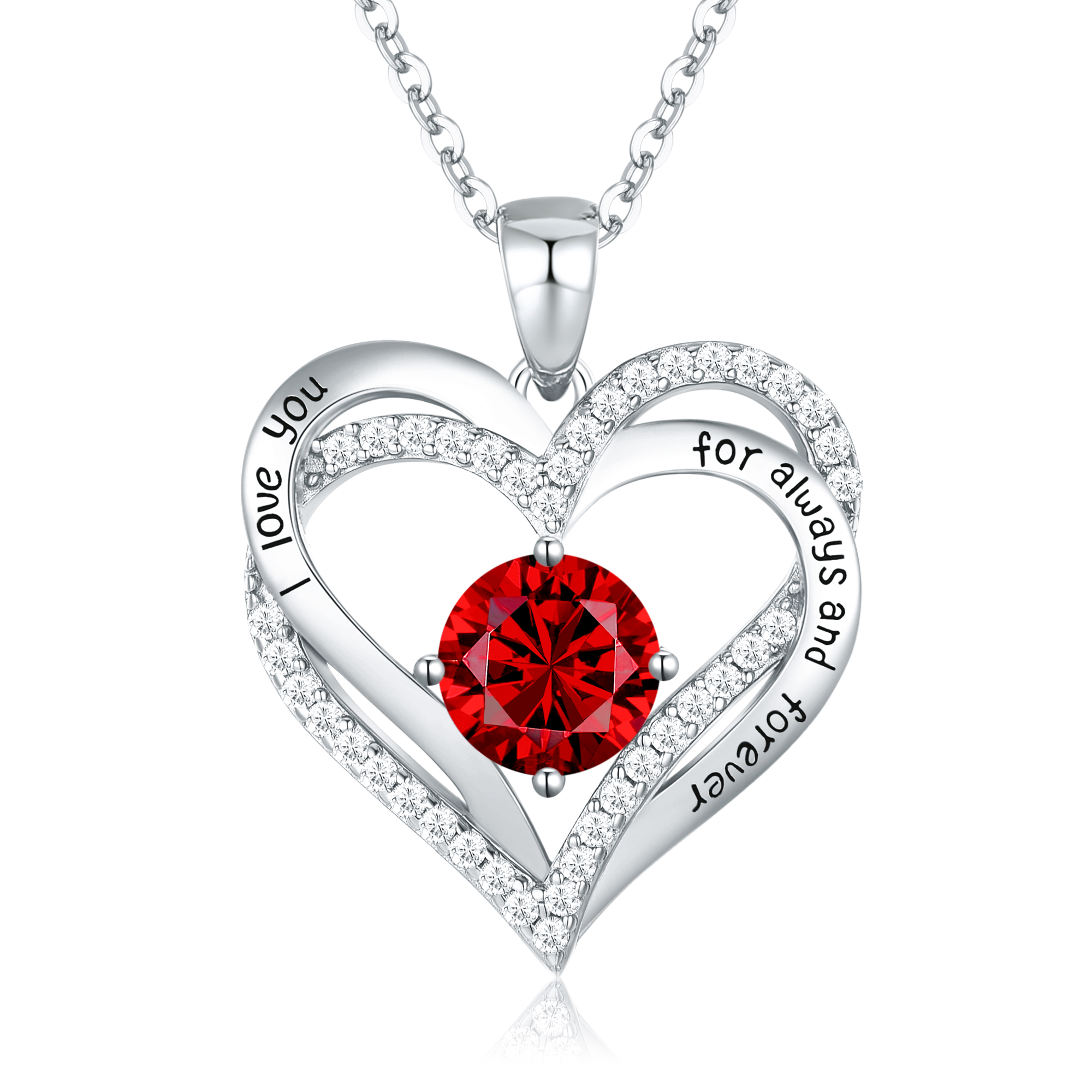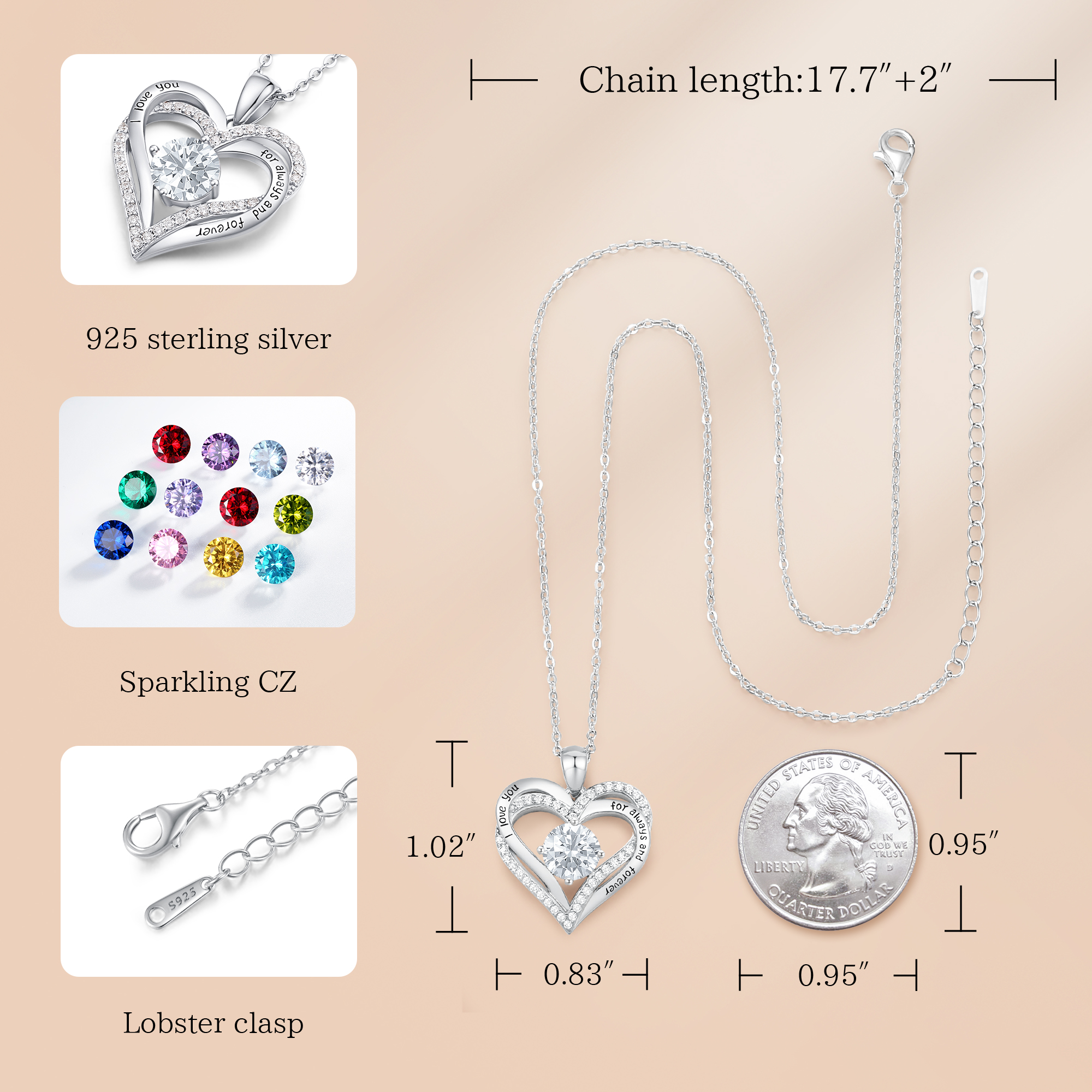 Forever Love Heart Necklaces for Women, Wedding Anniversary, Birthday Gift for Wife, S925 Silver Jewelry with Birthstone Pendant