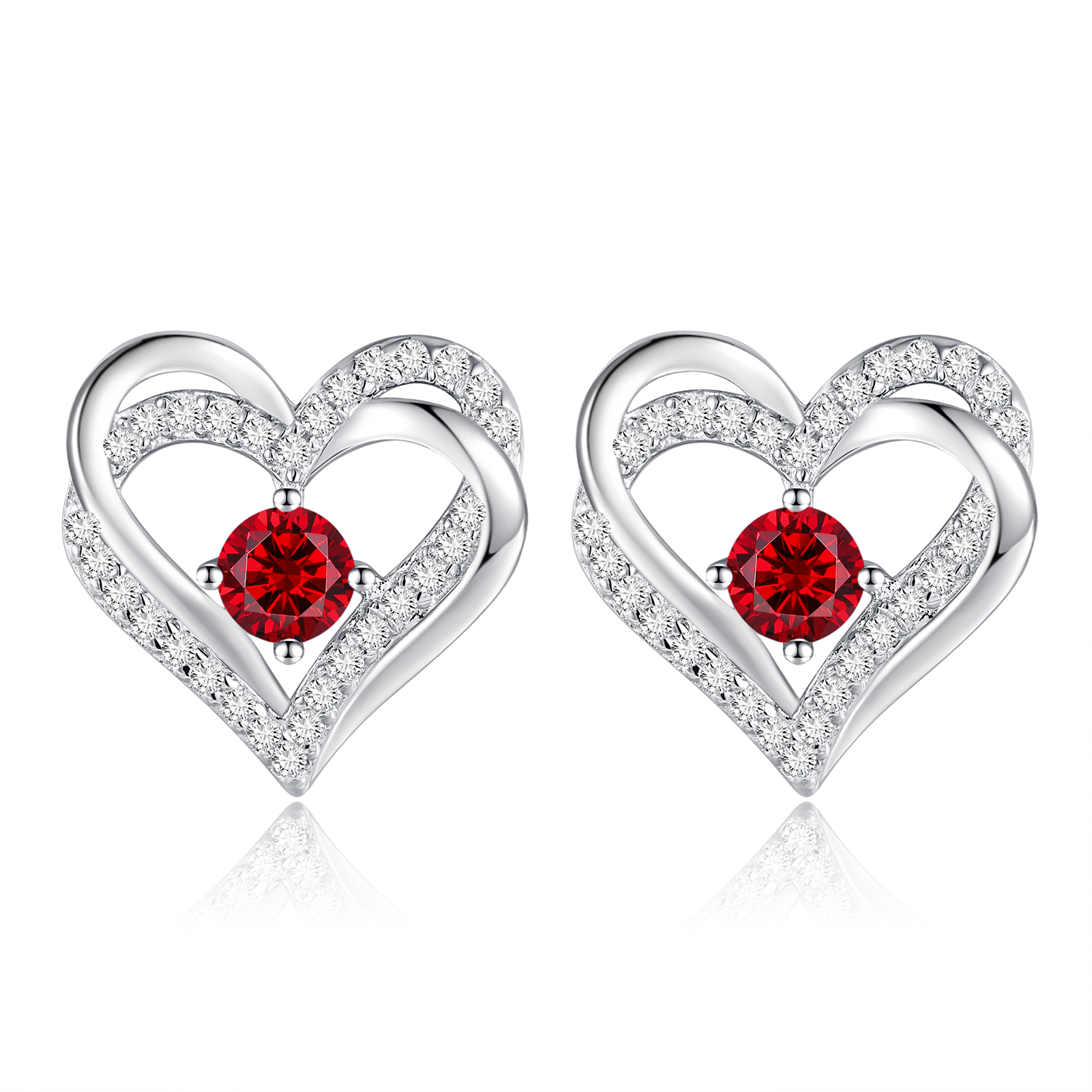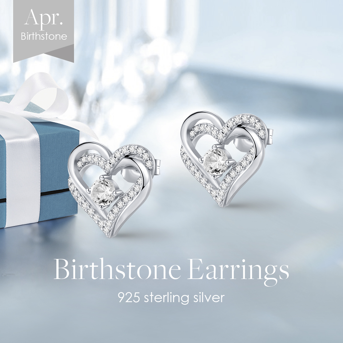 Forever Love Heart Stud Earrings for Women, Birthstone Heart Stud Earrings Mother's Day Gift Anniversary Birthday Jewelry Gifts for Women Wife Her
