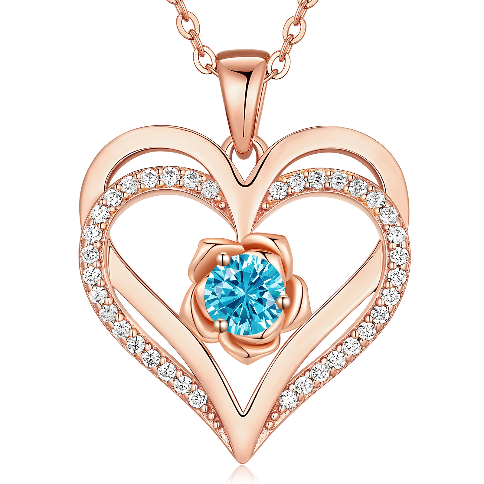 CDE Necklaces for Women, 925 Silver Rose Gold Birthstone Jewelry for Girlfriend Mom Her