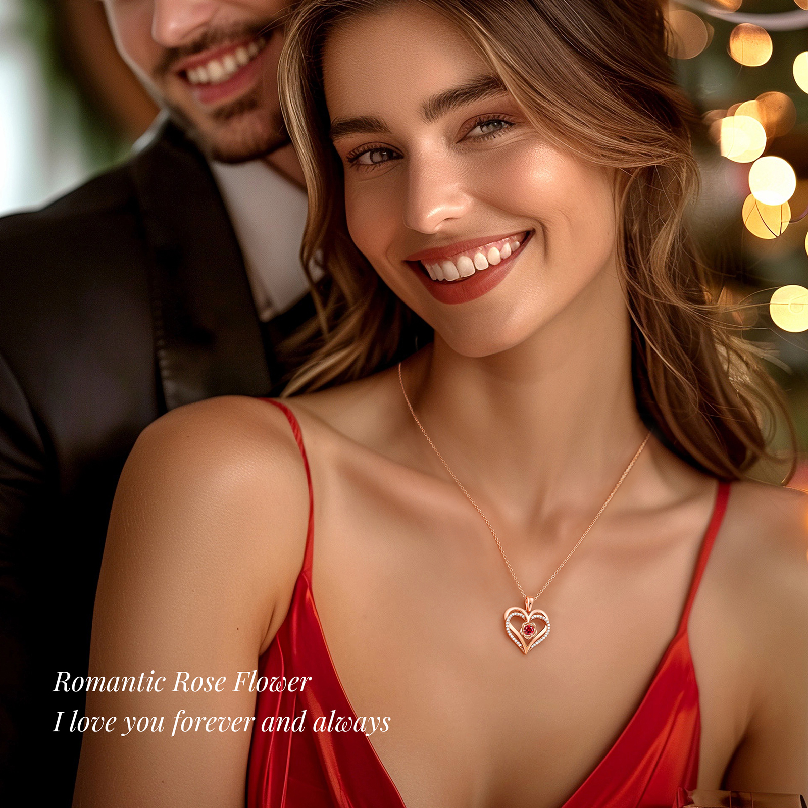 Forever Love Heart Necklaces for Women, Wedding Anniversary, Birthday Gift for Wife Girlfriend Jewelry with Birthstone Pendant