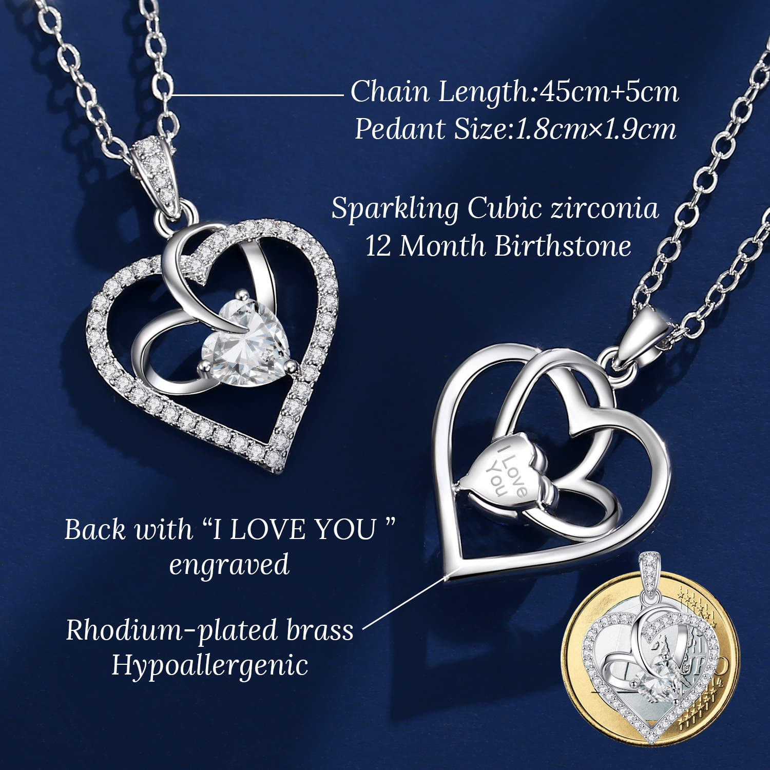 Forever Love Heart Necklaces for Women, Wedding Anniversary, Birthday Gift for Wife Girlfriend Jewel