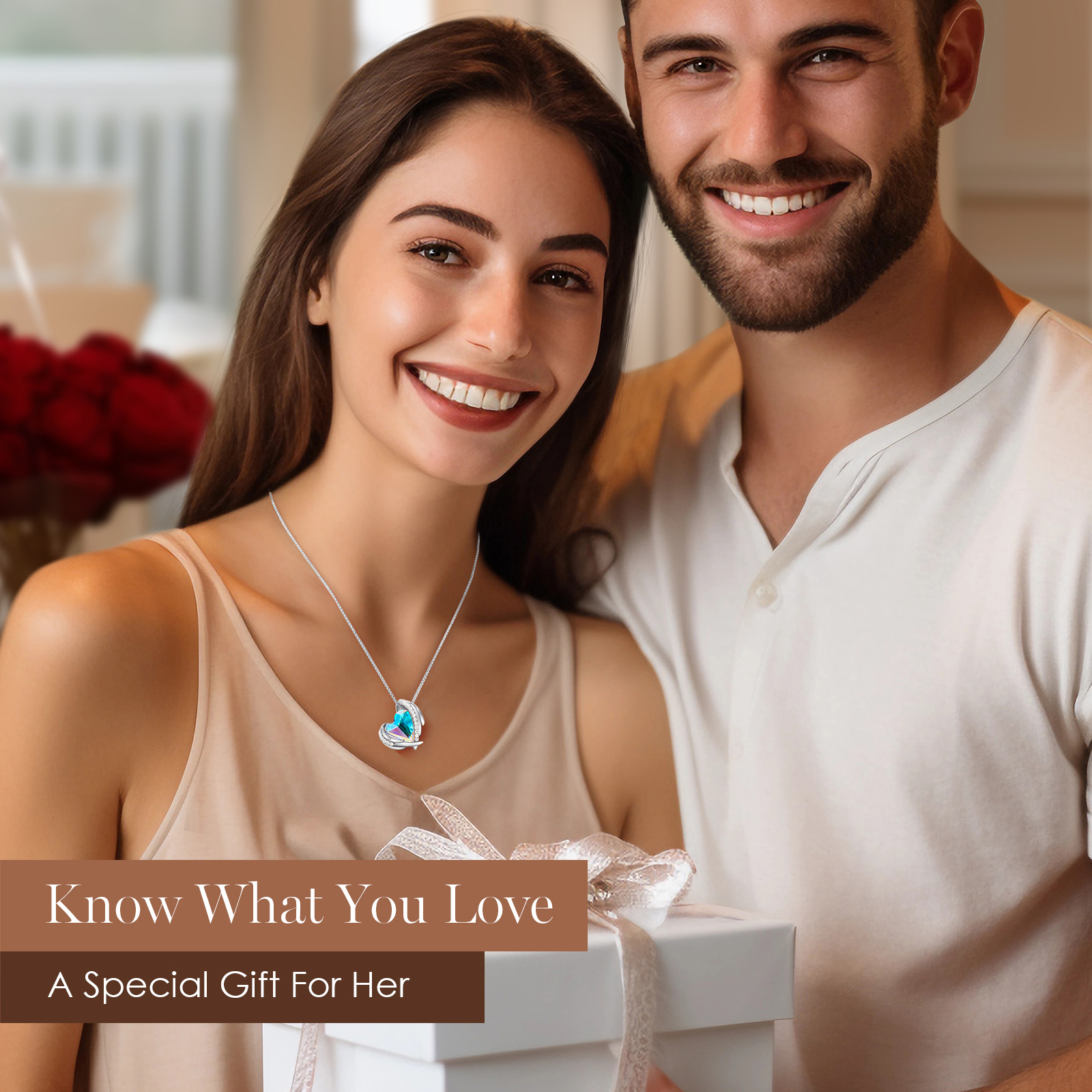 Forever Love Heart Necklaces for Women, Wedding Anniversary, Birthday Gift for Wife Girlfriend Jewelry with Birthstone Pendant