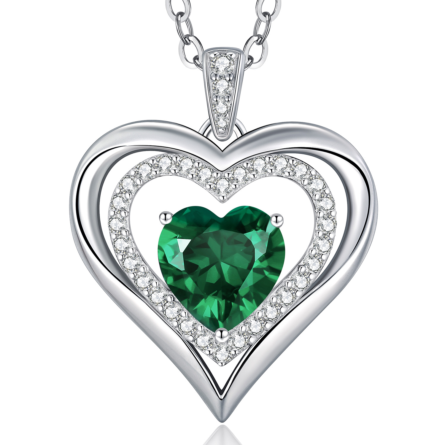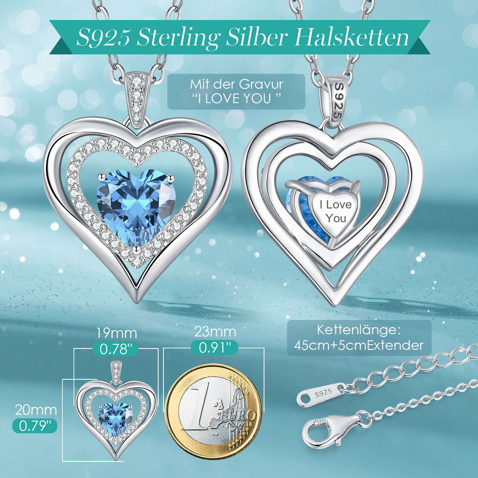 Necklaces for Women Birthstone Love Heart Pendant 925 Sterling Silver Jewellery Gifts for Mum Her Wife Girlfriend Anniversary Birthday Mothers Day Christmas