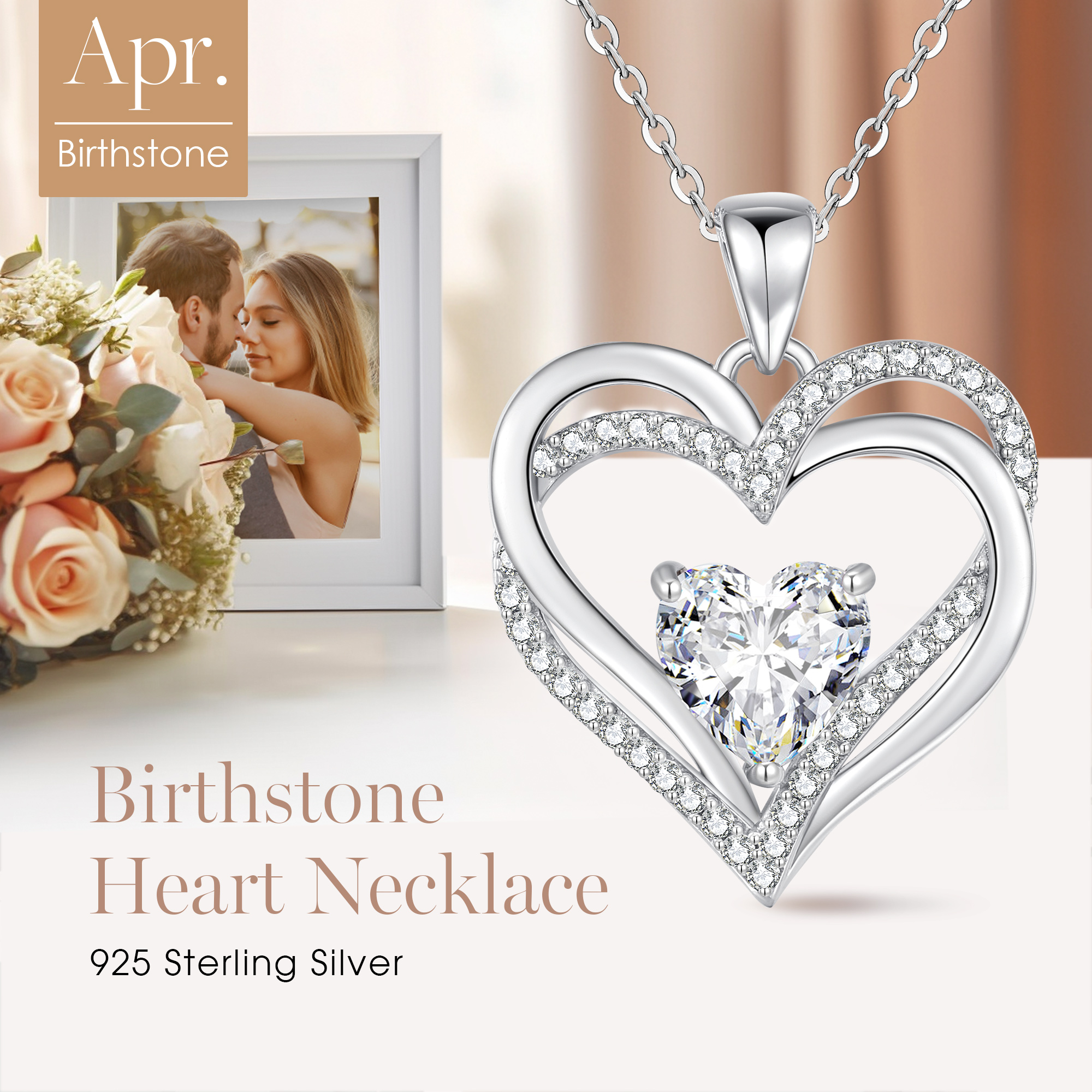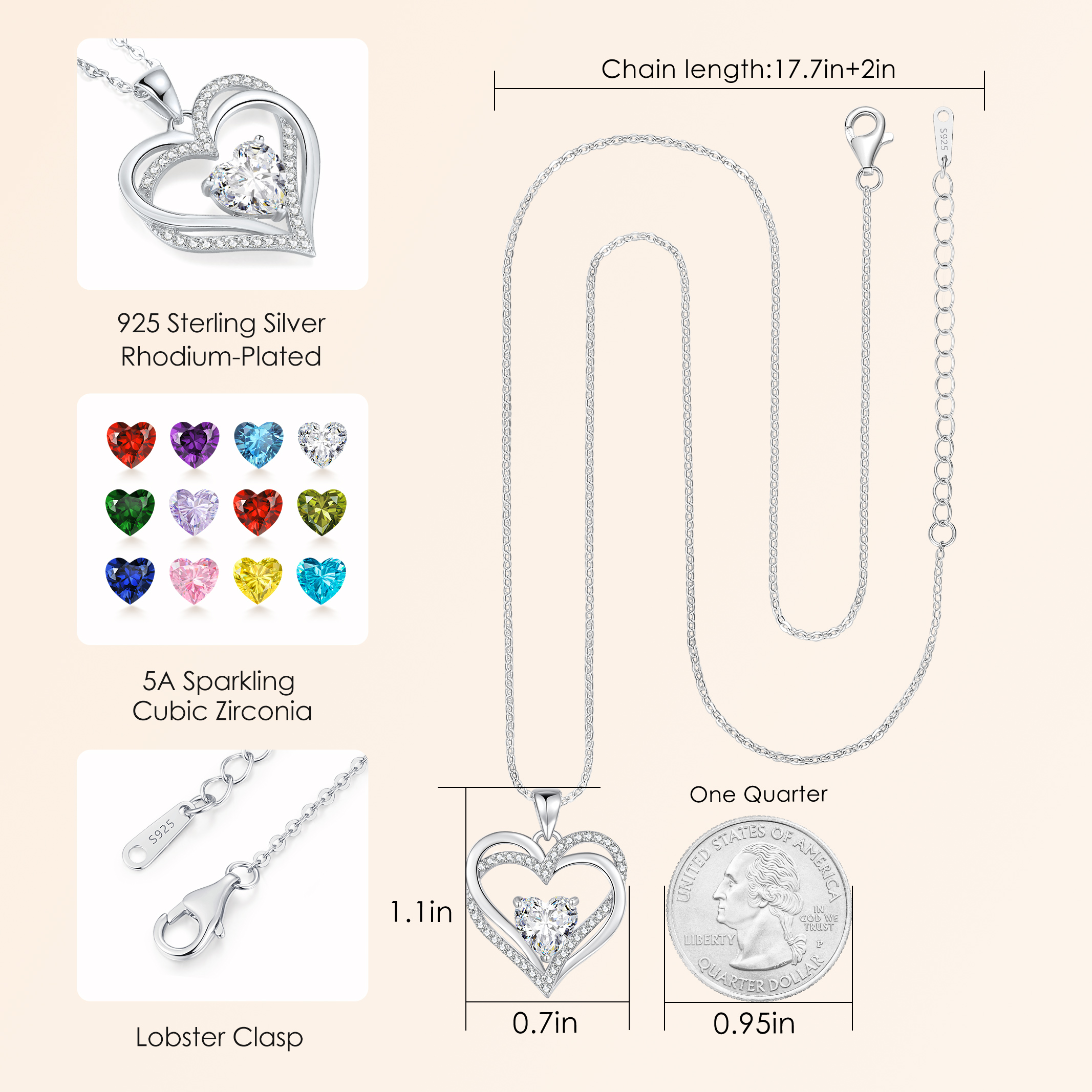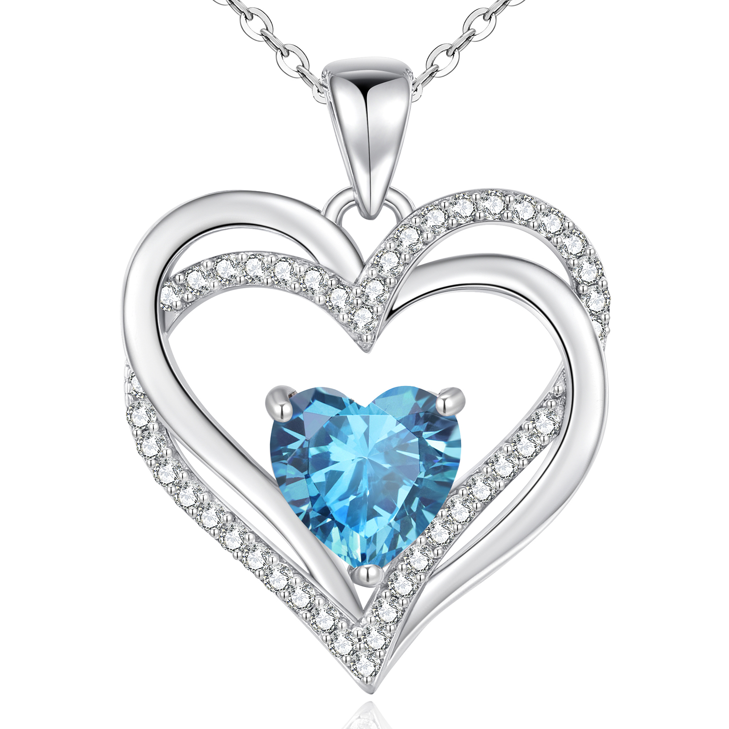 Women's Heart Necklace, 925 Sterling Silver, Birthstone, Jewellery, Heart Pendant, Christmas, Valentine's or Mother's Day Gift, Wedding Anniversary, Wife, Girlfriend or Mum