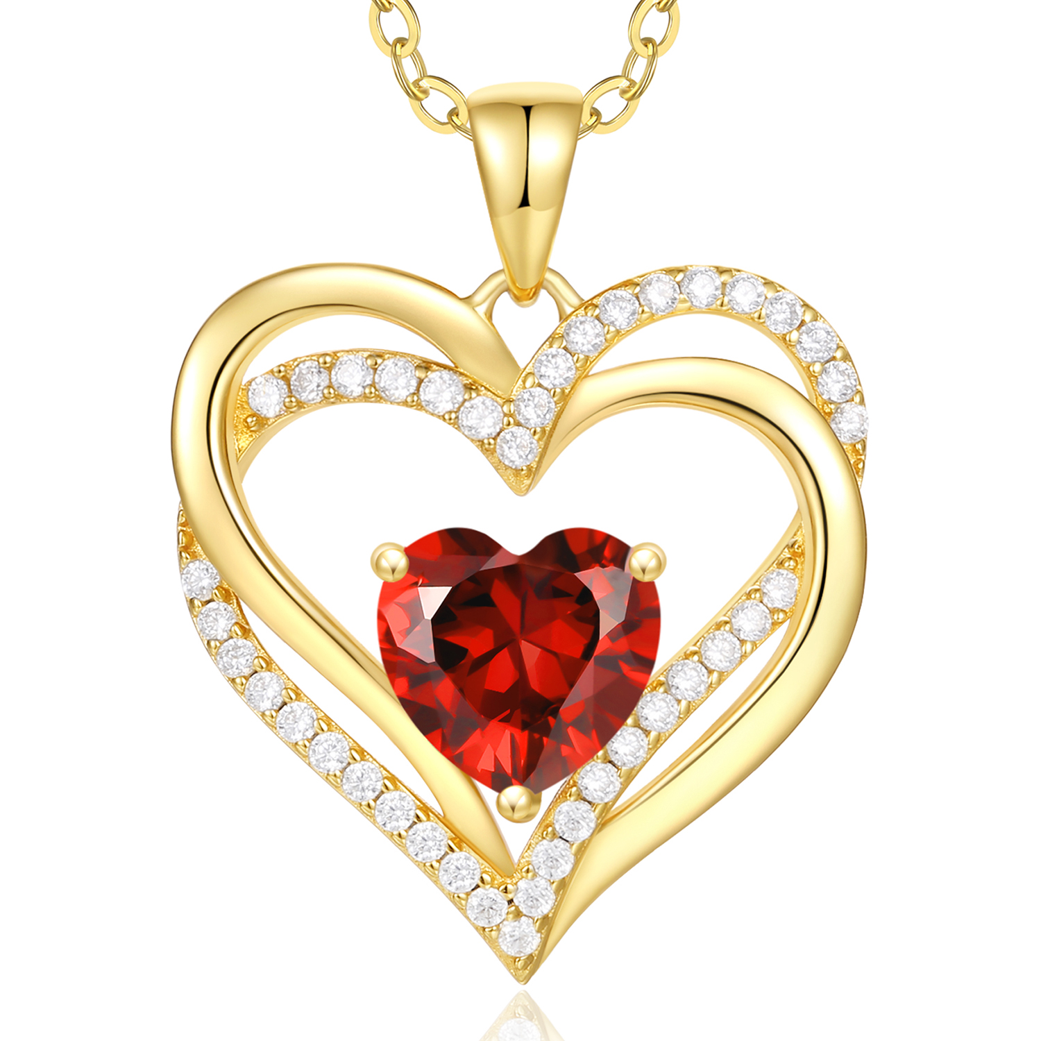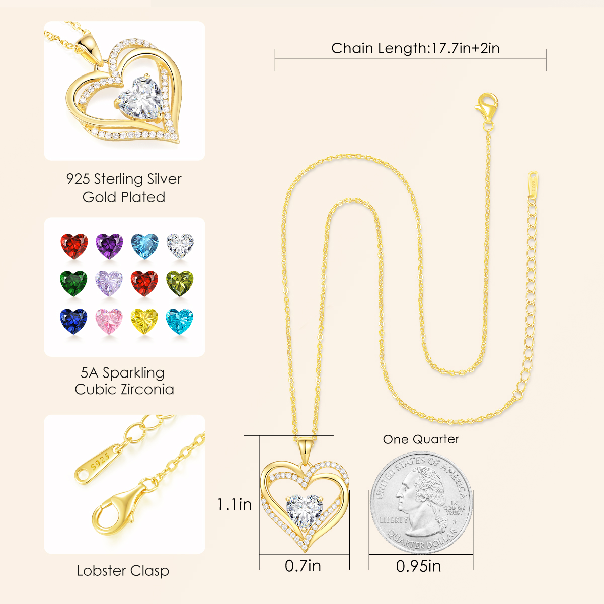 Love Heart Pendant Necklaces for Women, Silver Tone Rose Gold Tone Birthstone Jewelry Gifts for Wife