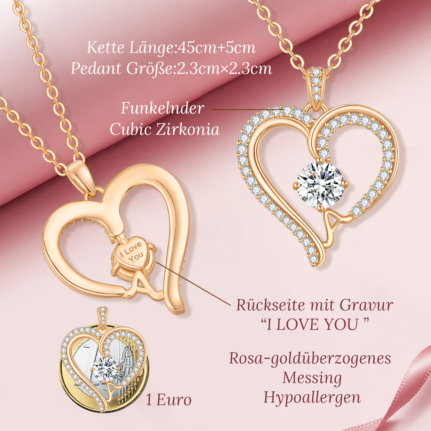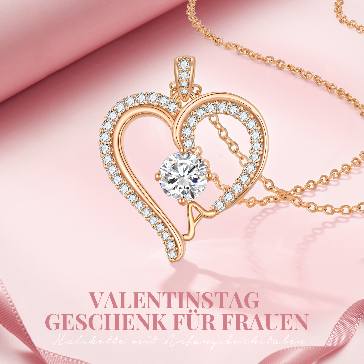 Love Heart Pendant Necklaces for Women, Silver Tone Rose Gold Tone Birthstone Jewelry Gifts for Wife