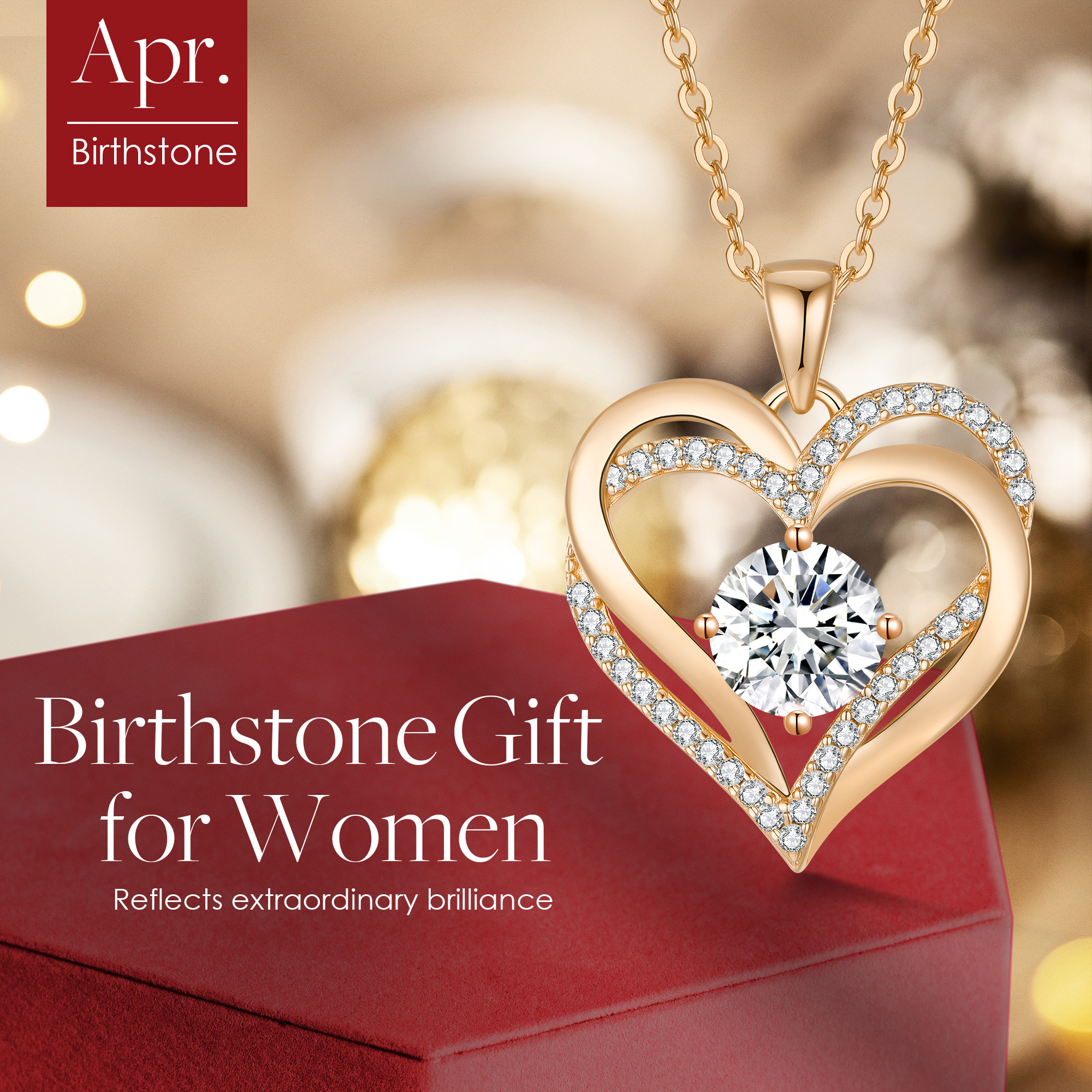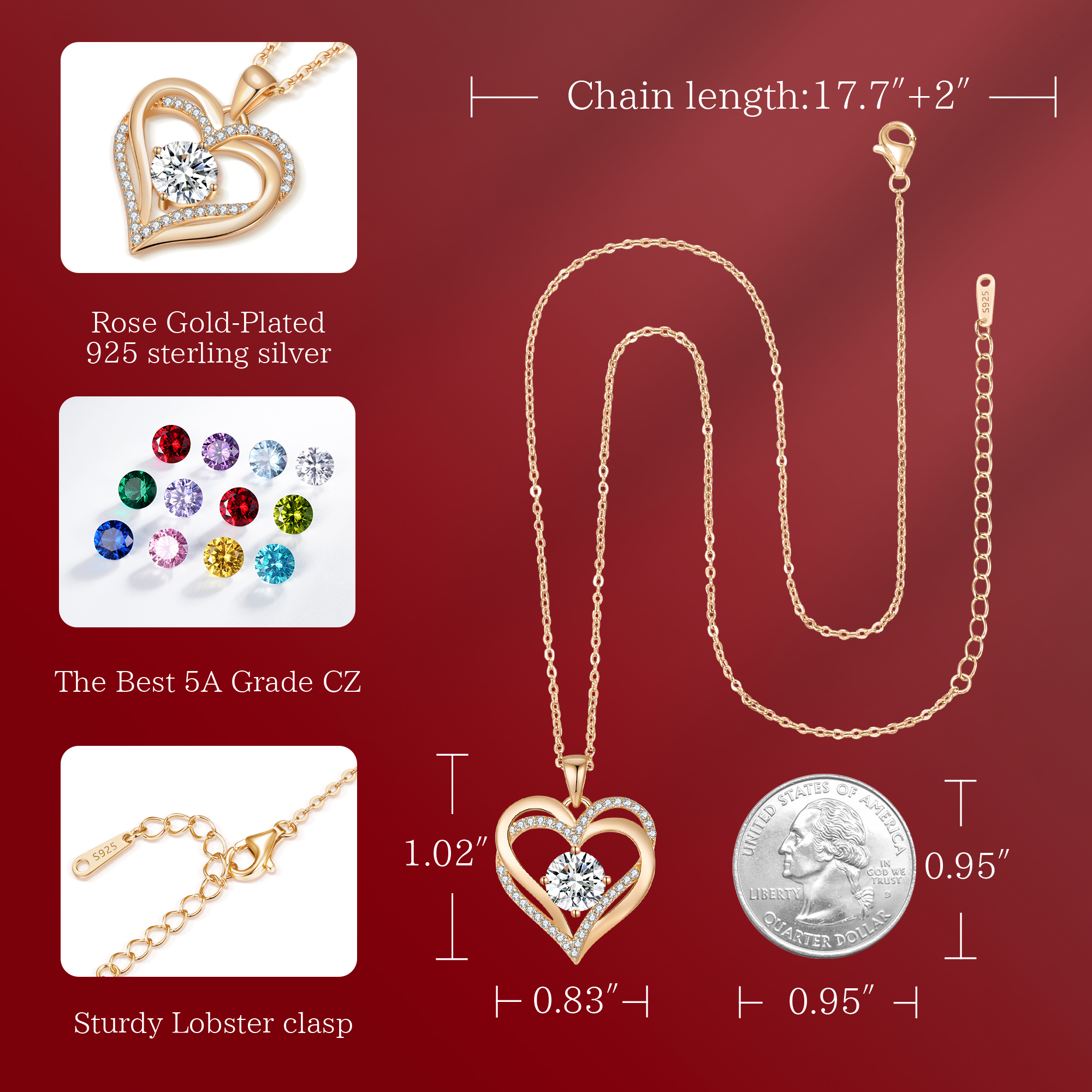 Love Heart Pendant Necklaces for Women, Silver Tone Rose Gold Tone Birthstone Jewelry Gifts for Wife